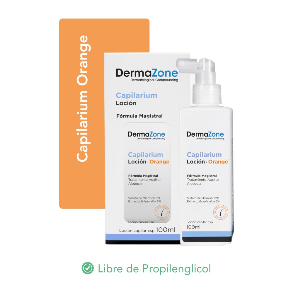 Loción capilar, tratamiento auxiliar para la alopecia. Con Sulfato de 12% y Extracto Eclipta Alba 5%.